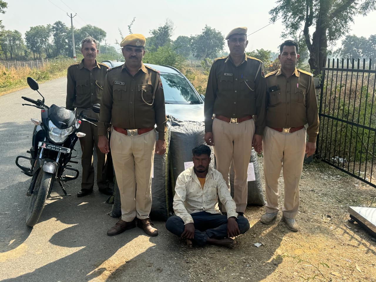 जिला पुलिस अधीक्षक सुधीर जोशी ने बताया कि जिले में अवैध मादक पदार्थों की तस्करी की रोकथाम व धरपकड़ करने के समस्त थानाधिकारियों को निर्देश दिए गए। इसी क्रम में एएसपी चित्तौड़गढ़ सरिता सिंह के निर्देशन व डीएसपी भदेसर अनिल शर्मा के सुपरविजन में बुधवार को थानाधिकारी शंभूपुरा ठाकरा राम उनि व पुलिस जाप्ता एएसआई डालचन्द्र, कानि. प्रकाश, रामेश्वर, कमलेश, दिनेश व देवकिशन के साथ गिलुण्ड से भाटिया का खेडा रोड पर पहुंच कर नाकाबन्दी की जा रही थी। इसी दौराने भाटिया का खेड़ा गांव की तरफ से एक मोटरसाईकिल आई जिसे एक व्यक्ति चला रहा था। जिसे थानाधिकारी व जाब्ता द्वारा रुकने का ईशारा किया तो मोटरसाईकिल के चालक ने मोटरसाईकिल को नहीं रोक कर नाकाबन्दी तोड़कर निकलने का प्रयास किया। जिसे पुलिस जाब्ता ने दोड़कर बेरियर लगाकर मोटरसाईकिल को रोका, मोटरसाईकिल का चालक काफी घबराया हुआ होकर बार-बार पिछे मुड़ कर देखकर मोबाईल से फोन करने की कोशीश करने लगा। इसी समय पिछे से एक कार आई जिसको एक व्यक्ति चला रहा था। उक्त कार को देखकर डिटेन किया हुआ मोटर साईकिल चालक ने कार की तरफ ईशारा कर भागने का ईशरा किया। कार के चालक ने कार को नाकाबन्दी स्थल से पहले ही रोड के किनारे रोक कर कार को छोड कर खेतों की तरफ भागा, जिसका पुलिस जाप्ता द्वारा पिछा किया मगर गन्ने की खेतो में होता हुआ भाग गया ।