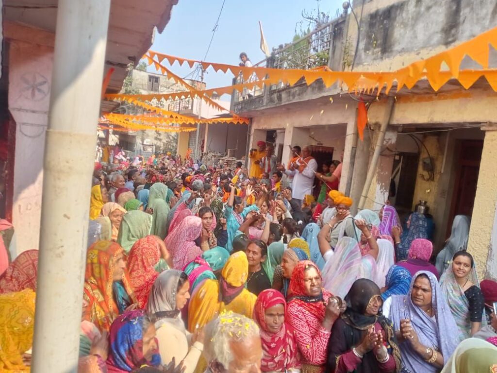 सुबह चारभुजानाथ धर्मशाला से प्रभातफेरी की शुरुआत हुई, जहां श्रद्धालुओं ने ठाकुरजी के बेवाण के साथ हरि कीर्तन करते हुए गांव का भ्रमण किया। प्रभातफेरी के दौरान गांव के अलग-अलग स्थानों पर पुष्प वर्षा और फलाहार वितरण कर श्रद्धालुओं का स्वागत किया गया।