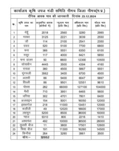 नीमच कृषि उपज मंडी में आज 23 दिसम्बर को कृषि जिंसों के भाव इस तरह से रहे।