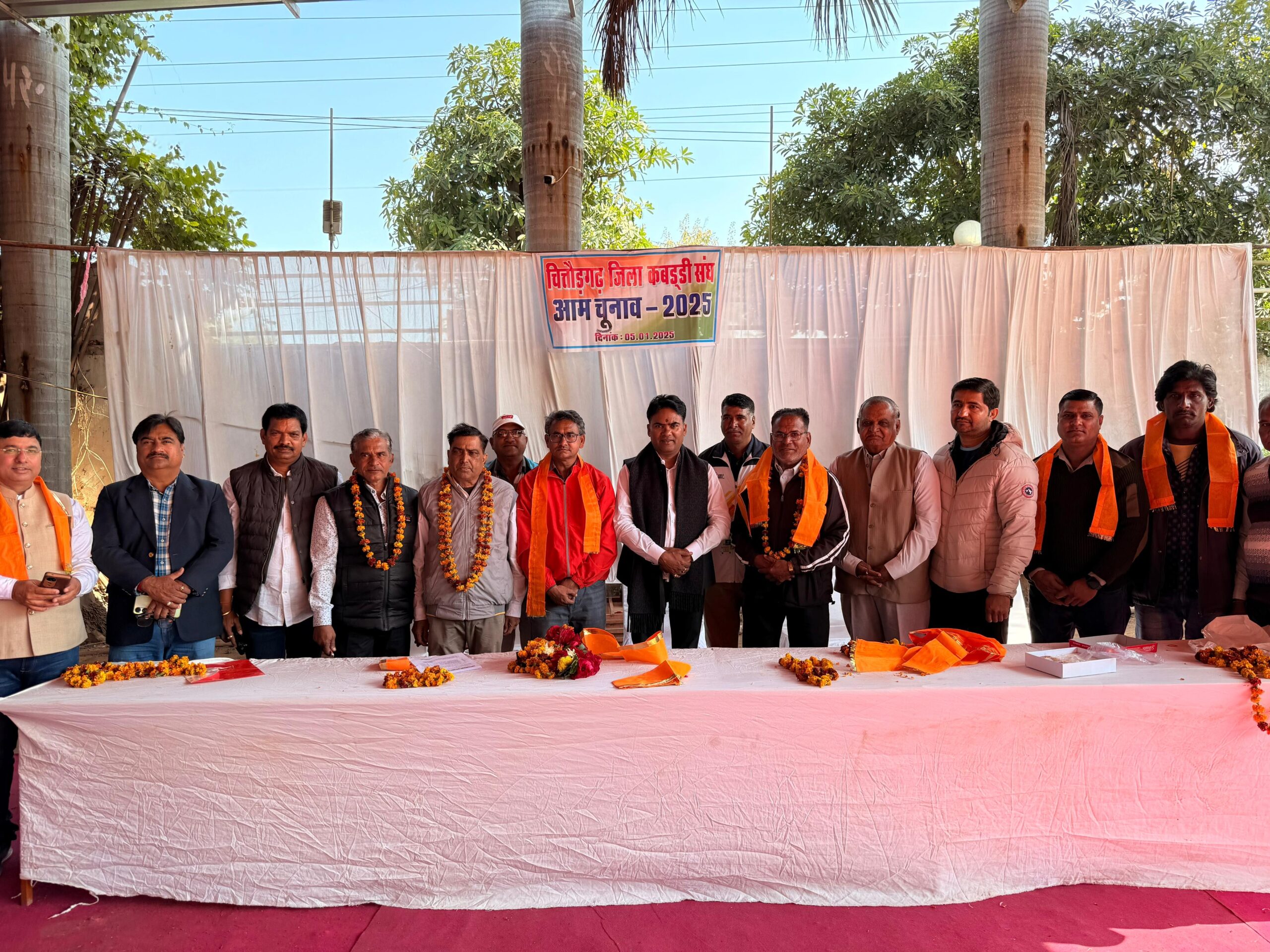 चित्तौड़गढ़। विधायक चंद्रभान सिंह आक्या आज जिला कबड्डी संघ के निर्विरोध जिला अध्यक्ष निर्वाचित हुए। जिला कबड्डी संघ चित्तौड़गढ़ के चुनाव 5 जनवरी को शहर में स्थित एक वाटिका में संपन्न हुए। यह जानकारी देते हुए जिला कबड्डी संघ के चुनाव अधिकारी घनश्याम गर्ग ने बताया कि जिला कुश्ती संघ के चुनाव में सभी पदों पर निर्विरोध निर्वाचन संपन्न हुए, जिनमें अध्यक्ष पद पर विधायक चंद्रभान सिंह आक्या, सचिव पद पर गुलज़ार खां, कोषाध्यक्ष पद पर कुलदीप सिंह चौधरी, वरिष्ठ उपाध्यक्ष पद पर नारायण दास, उपाध्यक्ष पद पर नारुलाल कीर, उमेश पालीवाल, संयुक्त सचिव पद पर सत्यनारायण भोई, जितेंद्र शर्मा निर्विरोध निर्वाचित हुए। इस अवसर पर जिला खेल अधिकारी रामरतन गुर्जर, राजस्थान राज्य कबड्डी संघ के पर्यवेक्षक दिनेश कुमार सनाढ्य, जिला ओलम्पिक संघ के पर्यवेक्षक घनश्याम सिंह राणावत, जिला कुश्ती संघ के अध्यक्ष शैलेंद्र झंवर, सचिव रतन गुर्जर,मण्डल संयोजक ओमप्रकाश शर्मा, बॉस्केटबॉल संघ के शैतान सिंह सहित विभिन्न खेल संघों के प्रतिनिधी उपस्थित थे।