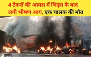 लाडपुरा चौराहा के पास 4 टैंकरों में भिड़ंत के बाद भीषण आग लगी, एक की मौत