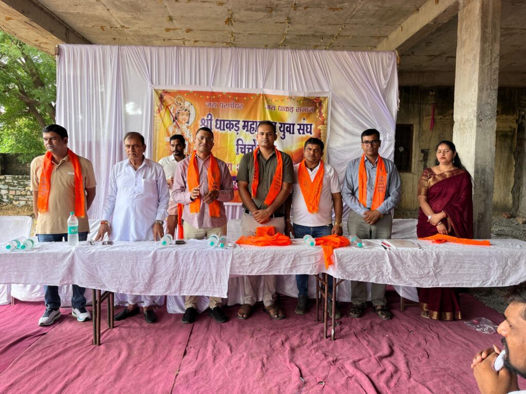 चित्तौड़गढ़। श्री धाकड़ महासभा युवा संघ चित्तौड़गढ़ के तत्वावधान में नव नियुक्त पदाधिकारियों का शपथ ग्रहण एवं मिलन समारोह रविवार 29 जून को सेंती स्थित धाकड़ समाज पंचायती नोहरा, धरणीधर सर्कल के पास उत्साह एवं गरिमामय वातावरण में सम्पन्न हुआ। समारोह की शुरुआत अतिथियों के स्वागत व श्री धरणीधर भगवान के दीप प्रज्वलन के साथ हुई। इसके पश्चात युवा संघ की नव नियुक्त जिला कार्यकारिणी के पदाधिकारियों को उपरना पहनाकर शपथ दिलाई गई।