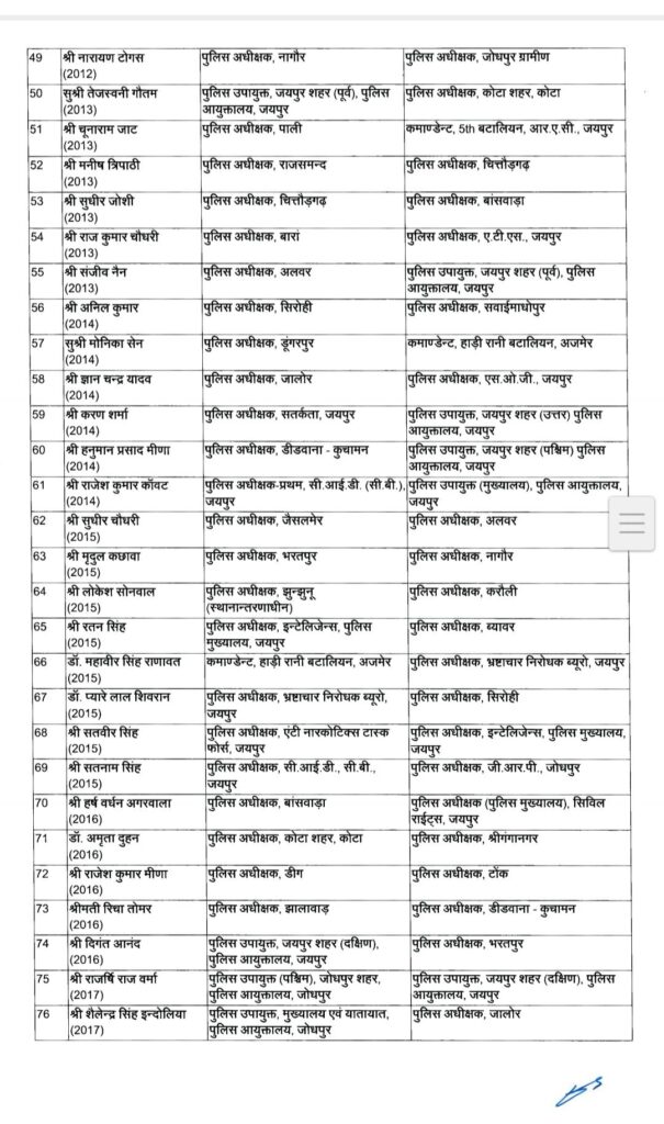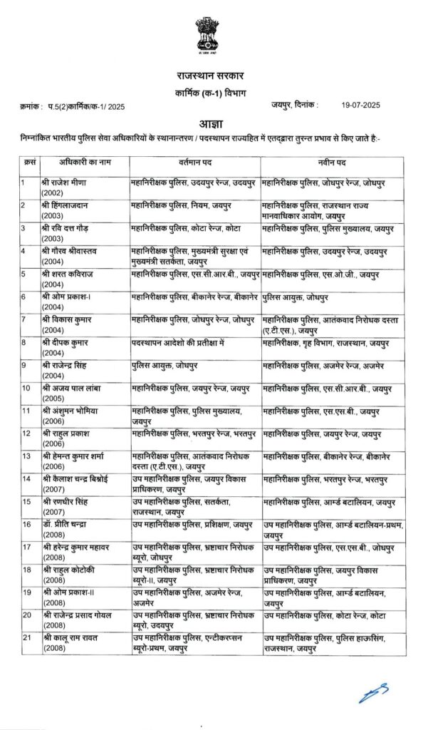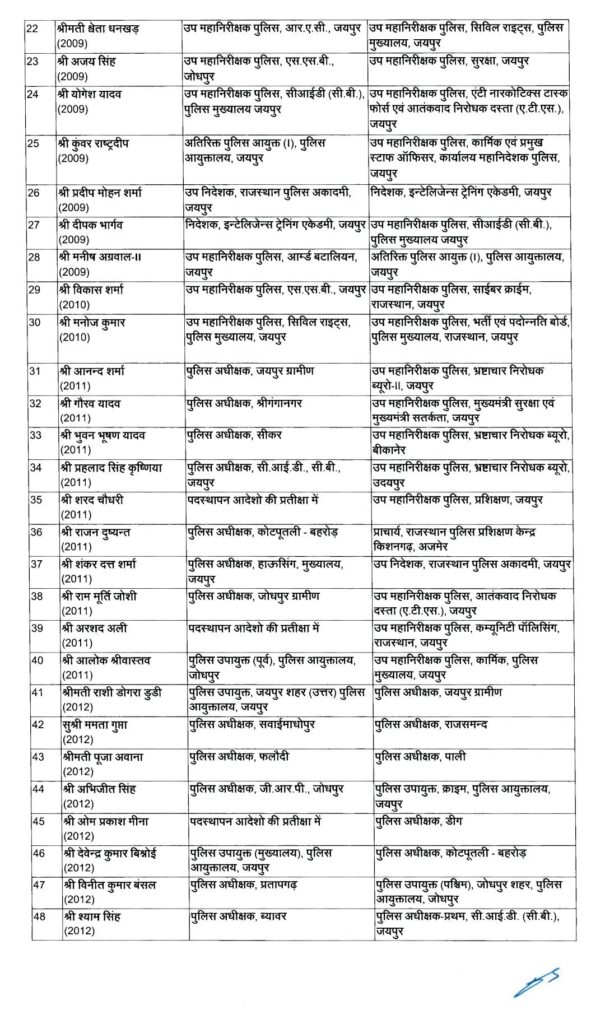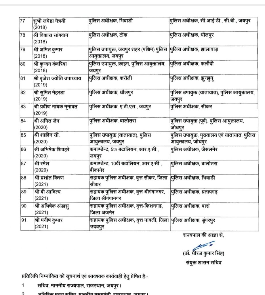 पुलिस महकमें में बड़ा उलटफेर, 91 आईपीएस के तबादले, मनीष त्रिपाठी होंगे चित्तौड़गढ़ नए एसपी