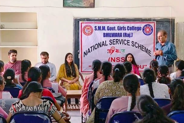 भीलवाड़ा। (पंकज पोरवाल) सेठ मुरलीधर मानसिंहका राजकीय कन्या महाविद्यालय में 18 सितम्बर से तीन दिवसीय एन.एस.एस. ओरिएंटेशन कार्यक्रम का शुभारंभ हुआ। कार्यक्रम की अध्यक्षता कॉलेज के प्राचार्य सावन कुमार जांगिड़ ने की। इस अवसर पर विद्यार्थियों को राष्ट्रीय सेवा योजना के उद्देश्यों, गतिविधियों और सामाजिक योगदान के बारे में विस्तारपूर्वक जानकारी दी गई। साथ ही विद्यार्थियों को माय भारत पोर्टल पर पंजीकरण (रजिस्ट्रेशन) कराया गया। प्राचार्य जांगिड़ ने अपने उद्बोधन में कहा कि राष्ट्रीय सेवा योजना से जुड़कर छात्राएँ न केवल सामाजिक उत्तरदायित्व को समझती हैं बल्कि नेतृत्व क्षमता, सेवाभाव और व्यक्तित्व विकास की दिशा में भी आगे बढ़ती हैं। एनएसएस प्रभारी श्रीमती रीना सालोदिया ने बताया कि महाविद्यालय में 17 सितंबर से स्वच्छता ही सेवा पखवाड़े का शुभारंभ किया गया।