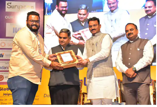 भीलवाड़ा। आरआईसी जयपुर में आयोजित ग्लोबल सोलर एक्सपो में राजस्थान के अक्षय ऊर्जा क्षेत्र में उत्कृष्ट योगदान देने वाले संस्थानों और व्यक्तियों को सम्मानित किया गया। उपमुख्यमंत्री डॉ. प्रेमचंद बैरवा मुख्य अतिथि थे। उपमुख्यमंत्री बैरवा ने कहा कि सौर ऊर्जा का क्षेत्र न केवल नवाचार व स्टार्टअप्स के लिए प्रेरणादायक है, बल्कि ऊर्जा आत्मनिर्भरता और हरित भविष्य की दिशा में सार्थक पहल है। कार्यक्रम में सीएफएल हाउस के डायरेक्टर ऋषभ धूत ने मंच पर सम्मान ग्रहण किया। कार्यक्रम में राज्य मंत्री गौतम दक आदि मौजूद रहे। शहर के गुर्जर मोहल्ला शाम की सब्जी मंडी स्थित सीएफएल हाउस के डायरेक्टर गिरिराज धूत ने बताया कि सीएफएल हाउस भीलवाड़ा को हाईएस्ट रेसिडेंशियल सोलर इंस्टॉलेशन के लिए विशेष रूप से सम्मानित किया गया। एक्सपो के विभिन्न सत्रों में नवीकरणीय ऊर्जा के अगले दशक की दिशा पर व्यापक चर्चा की गई। विशेषज्ञों, डेवलपर्स, वित्तीय संस्थानों और टेक्नोलॉजी लीडर्स ने प्रमुख विषयों पर विचार साझा किए।
