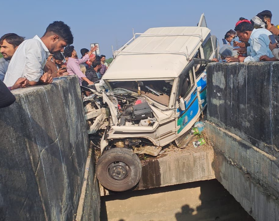 एनएच 27 पर हादसा : बोलेरो डिवाइडर के पुलिया में धंसी, चालक की मौत