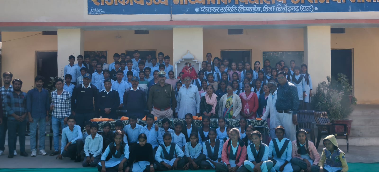 एएसआई सूरज कुमार ने विद्यार्थियों को मोबाइल का इस्तेमाल न करने की सलाह देते हुए कैरियर निर्माण के लिए कुछ टिप्स बताएं। मुख्य अतिथि ने विद्यालय में उपस्थित सभी विद्यार्थियों गणमान्य नागरिकों एवं विद्यालय स्टाफ को सड़क सुरक्षा की शपथ दिलाई। कार्यक्रम के अंत में प्रधानाचार्य ने आभार व्यक्त किया एवं कार्यक्रम का संचालन निर्भय राम धाकड़, अध्यापक ने किया। इस अवसर पर पुलिस थाना कोतवाली से हेड कांस्टेबल बाबूलाल कांस्टेबल देवीलाल,शंकरलाल एवं ग्रामवासी अंबालाल सुथार, गोवर्धन लाल रेगर, अशोक कुमार जाट, कमल कुमार जाट, देवकरण सुथार एवं विद्यालय स्टाफ ओमप्रकाश शर्मा कविता मीणा, शेर सिंह शेखावत, रूपा सोमानी, रंजन चौरडिया, शमशाद मंसूरी, प्रमोद कुमार, सुरेंद्र कुमार, जसवंत कुमार, निलेश साहू उपस्थित रहे।