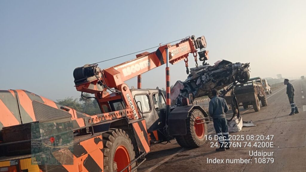 भदेसर, शैलेंद्र जैन। चित्तौड़गढ़-उदयपुर सिक्स लेन पर एक कार डिवाइडर से टकराने से बड़ा हादसा हो गया। हादसे में दो लोगों की मौके पर ही मौत हो गई और एक युवक गम्भीर घायल हो गया। जानकारी के अनुसार भादसोड़ा पुलिस थाना क्षेत्र स्थित नरधारी के पास हाइवे पर उदयपुर की तरफ से आई कार डिवाइडर से टकरा गई।