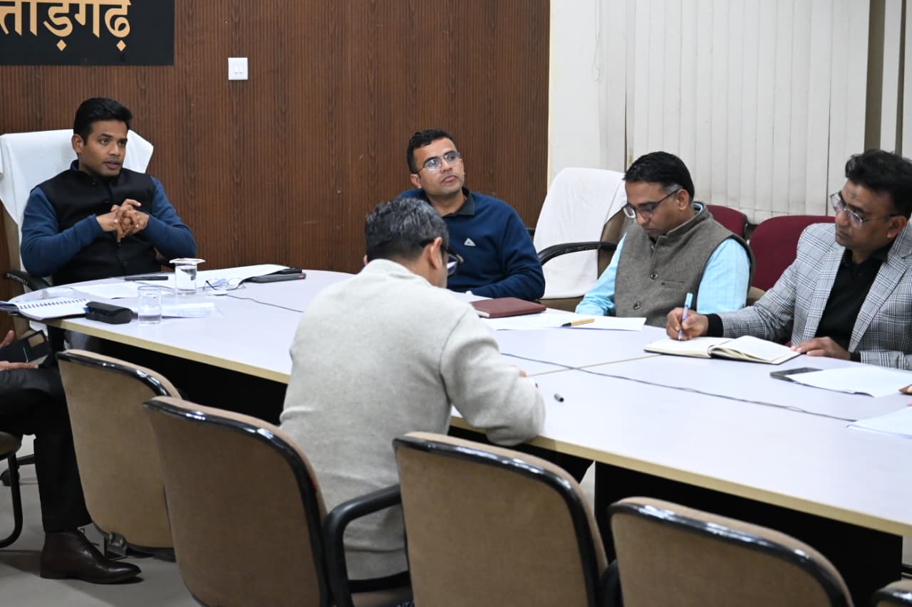 चित्तौड़गढ़। राज्य सरकार के निर्देशानुसार जिले में खनिज विकास, पर्यावरण संरक्षण एवं अवैध खनन की प्रभावी निगरानी हेतु गठित टास्क फोर्स की बैठक मंगलवार को जिला कलक्टर आलोक रंजन की अध्यक्षता में डीओआईटी के वीडियो कॉन्फ्रेंस कक्ष में आयोजित हुई। बैठक में वीडियो कॉन्फ्रेंसिंग के माध्यम से उपखंड एवं जिला स्तरीय अधिकारी जुड़े।