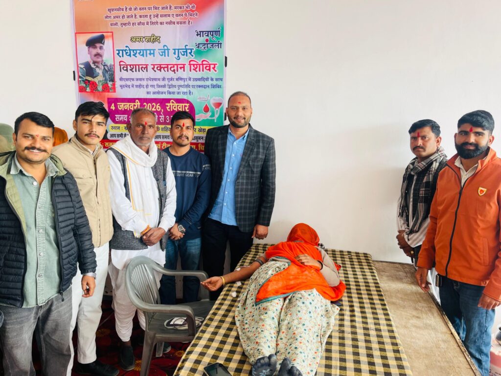 शहीद राधेश्याम गुर्जर की पुण्यतिथि पर उमड़ा जनसैलाब,नगरी में रक्तदान से गूंजा देशभक्ति का स्वर 116 यूनिट रक्त संग्रह