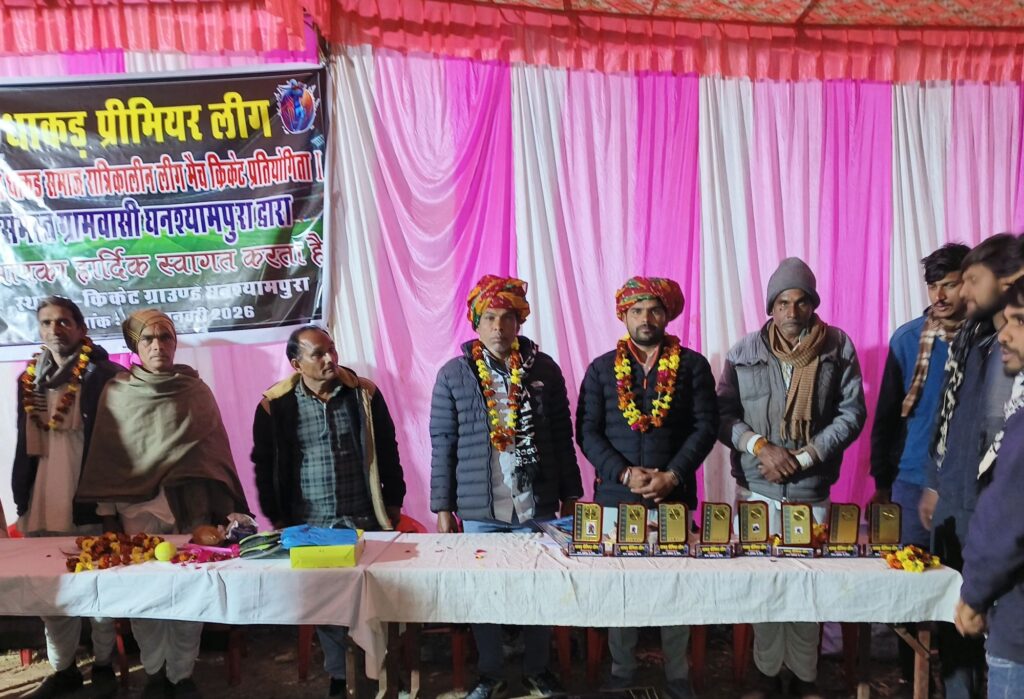 बेगूं। ग्राम पंचायत माधोपुर के घनश्यामपुरा में शुक्रवार को आदर्श धाकड़ समाज रात्रिकालीन लीग मैच क्रिकेट प्रतियोगिता के तहत द्वितीय धाकड़ प्रीमियर लीग क्रिकेट प्रतियोगिता का शुभारंभ हुआ। प्रतियोगिता का उद्घाटन देश पंचायत अध्यक्ष छगनलाल धाकड़ एवं माधोपुर पंचायत के पूर्व सरपंच भेरूलाल धाकड़ ने संयुक्त रूप से किया। इस अवसर पर गांव के वरिष्ठजनों ने अतिथियों का माला व साफा पहनाकर स्वागत किया।