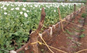 नारकोटिक्स विभाग ने चित्तौड़गढ़ जिले में करीब 22 हजार किसानों को अफीम खेती के लाइसेंस जारी किए हैं। अफीम फसल अब अपने पूर्ण यौवन पर है खेतों में सफेद फूलों की चादर बिछी है, फूलों के खिलने के बाद 10-15 दिन में गम पद्धति वाले लाइसेंस में किसान डोडे पर चीरा लगाकर दूध एकत्र कर विभाग को जमा करवाएंगे और सीपीएस पद्धति में अफीम डोडे पर बिना चीरा लगाएं डोडे को 8 इंच डंठल के साथ नारकोटिक्स विभाग में जमा करवाना होगा। अफीम खेतों में सफेद चादर बिछने के साथ ही अफीम किसानों को निगरानी बढ़ानी पड़ती हैं कारण यदि अफीम की खेती में नुकसान हुआ तो सीधा लाइसेंस निरस्त।