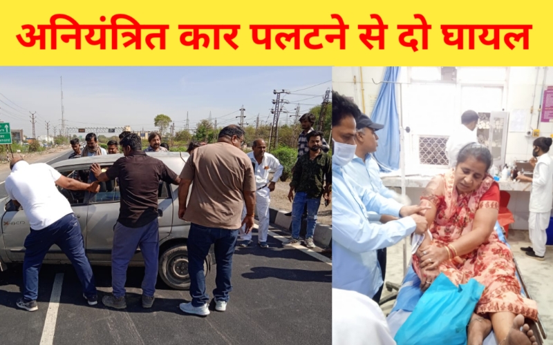 प्रतापपुरा के पास अनियंत्रित कार पलटने से दो घायल