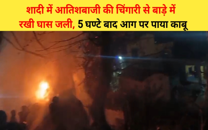 शादी में आतिशबाजी से बाड़े में रखी घास में लगी आग