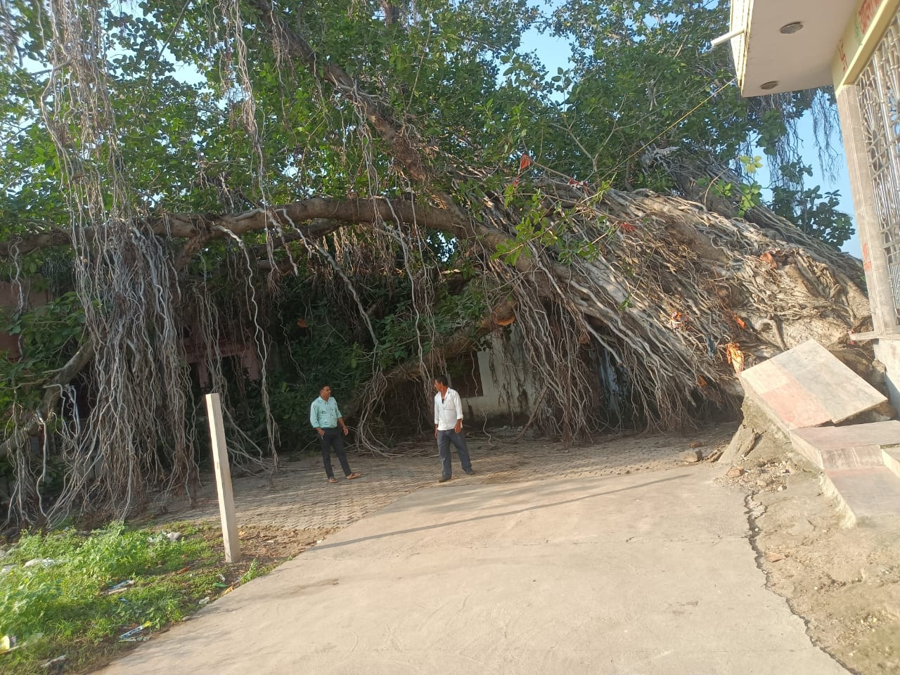 काबरी महादेव परिसर में वर्षों पुराना बरगद का पेड़ धराशायी, सराय क्षतिग्रस्त