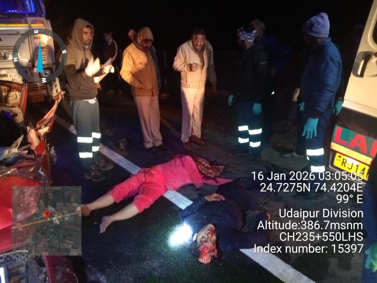 चित्तौड़गढ़। चित्तौड़गढ़-उदयपुर सिक्स लेन स्थित भादसोड़ा थाना क्षेत्र के नरधारी के पास देर रात को एक सड़क हादसे में एक ही परिवार के चार लोगों