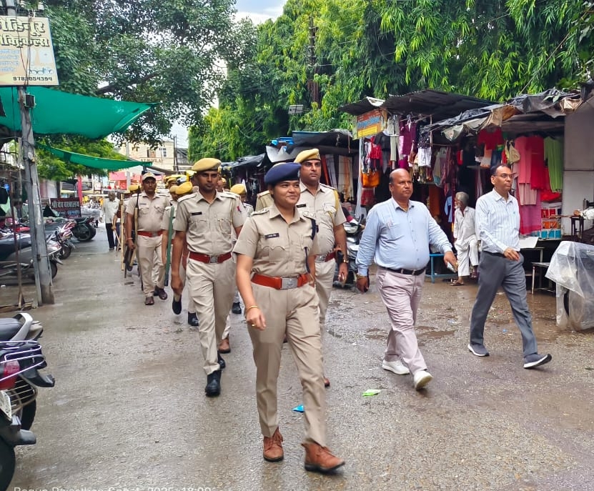 आगामी त्योहारों को लेकर बेगूं पुलिस का फ्लैग मार्च, सुरक्षा के पुख्ता इंतजाम