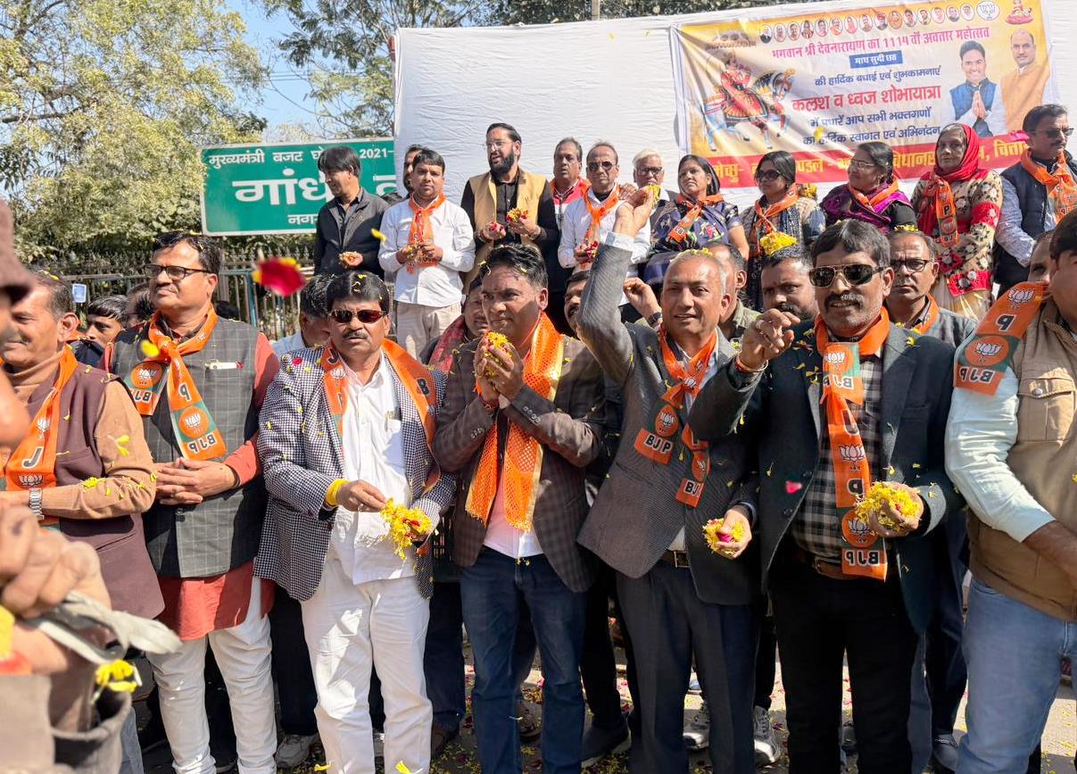 भगवान देवनारायण की जयंती पर निकली शोभायात्रा पर विधायक व कार्यकर्ताओं ने की पुष्प वर्षा