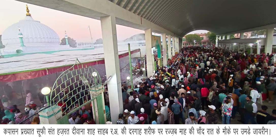 कपासन। प्रख्यात सूफी संत हज़रत दीवाना शाह साहब र.अ. की दरगाह शरीफ पर रज्ज़ब माह की चाँद रात के मौके पर आशिके दीवाना व जायरीने