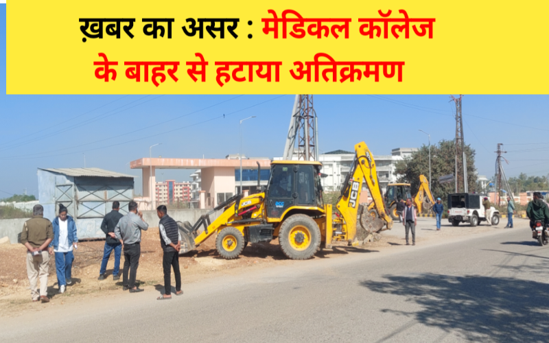 माय सर्कल न्यूज की खबर का असर : अतिक्रमियों के मंसूबों पर प्रशासन ने पानी फेरा, मेडिकल कॉलेज के बाहर से हटाया अतिक्रमण