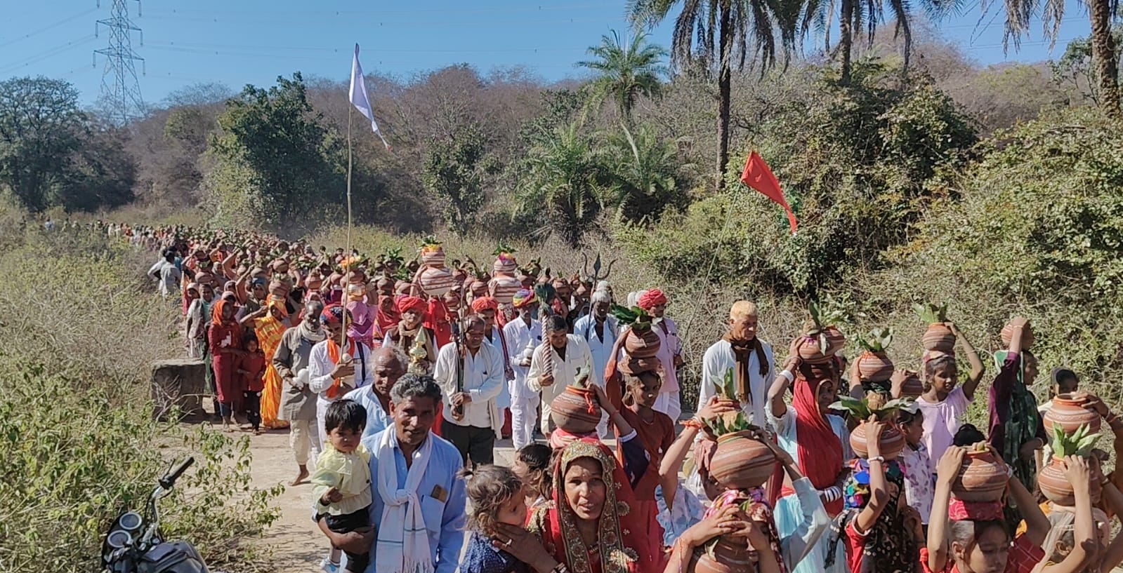 बारह गांव के नवनिर्मित देवरा का भव्य उद्यापन कार्यक्रम शुरू, श्रद्धालुओं ने निकाली कलश यात्रा