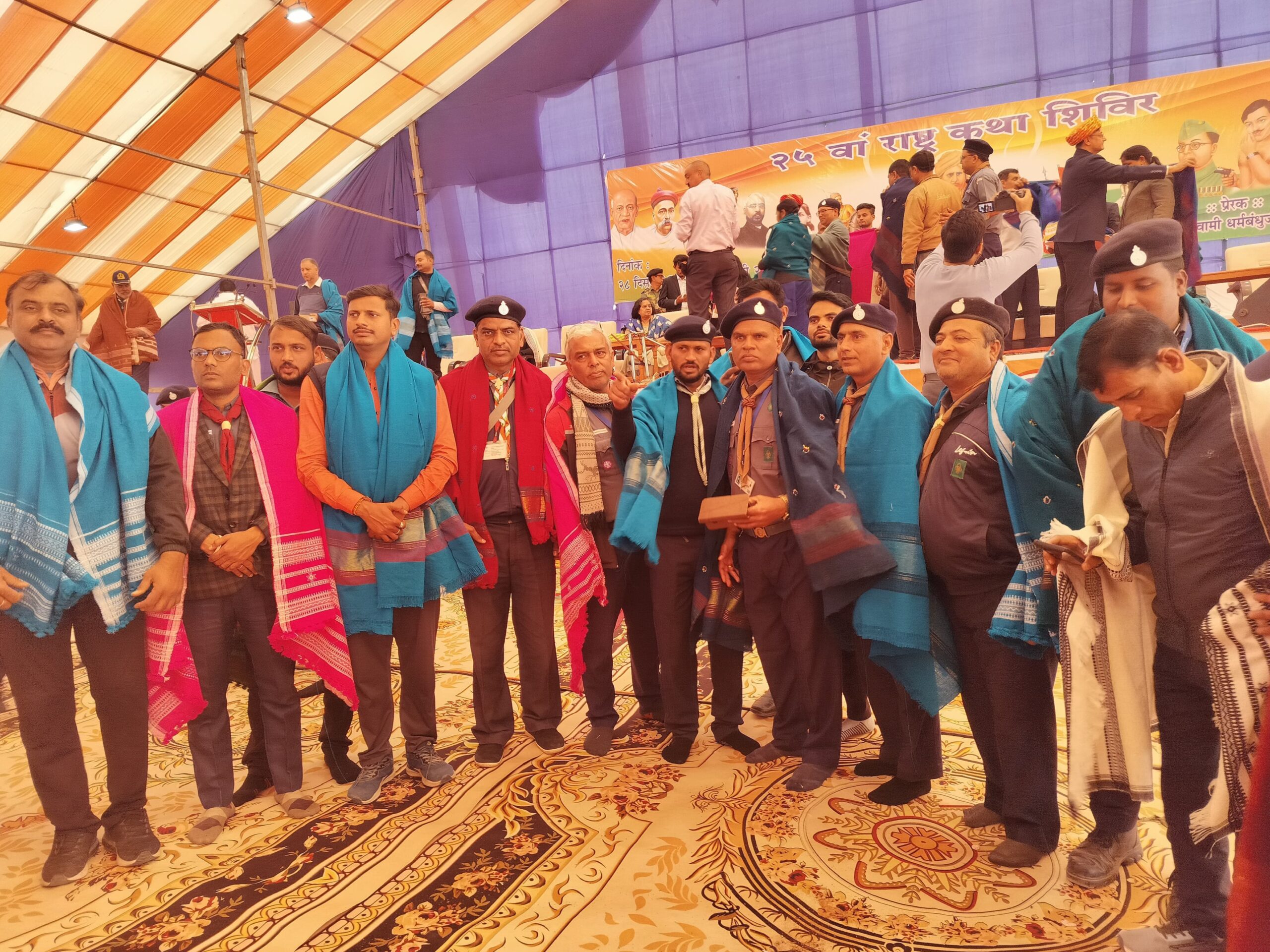 चित्तौड़गढ़। 25 वाँ राष्ट्र कथा शिविर प्रांसला तहसील उपलेटा राजकोट गुजरात में चित्तौड़गढ़ जिले के वरिष्ठ अध्यापक सत्यनारायण शर्मा राउमावि रेवाड़ा राशमी व पूरण मल