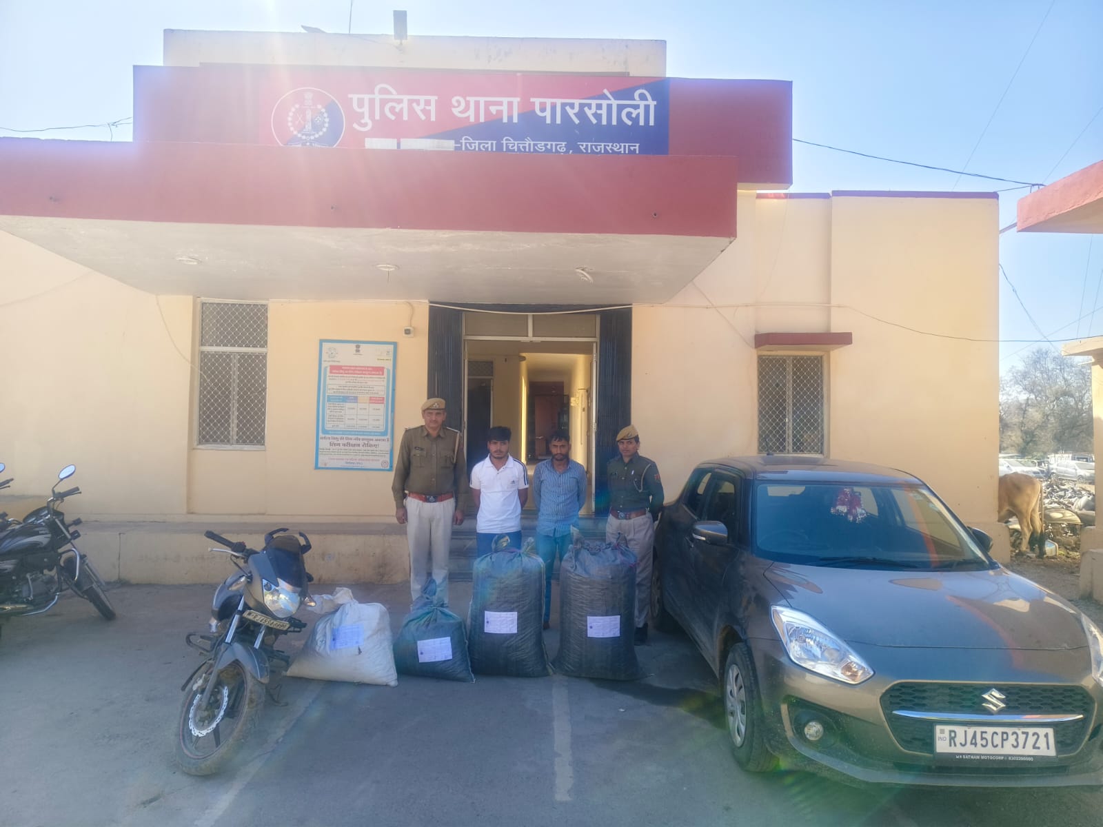 बेगूं। पारसोली थाना पुलिस ने शुक्रवार को मादक पदार्थ तस्करो के विरुद्ध प्रभावी कार्यवाही करते हुए थाना क्षेत्र के आकोडिया गांव में एक मकान में
