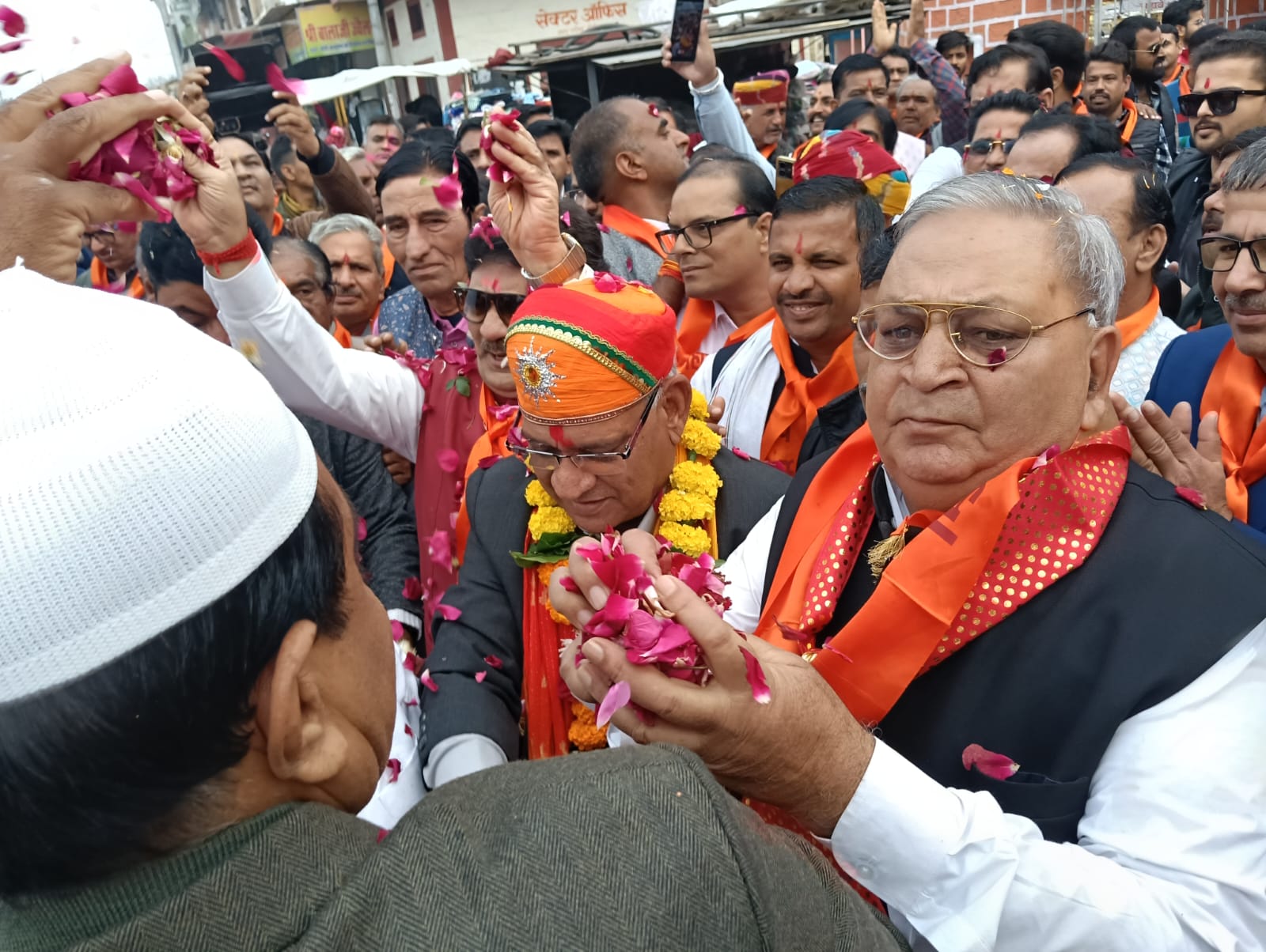 शोभायात्रा के दौरान अंजुमन मिल्लते इस्लामिया संस्थान ने पुष्प वर्षा कर किया स्वागत