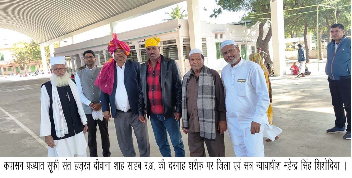 कपासन। प्रख्यात सूफी संत हजरत दीवाना शाह साहब र.अ. की दरगाह शरीफ पर जिला एवं सत्र न्यायाधीश महेन्द्र सिंह शिशोदिया ने मुख्य मजार पर फूल