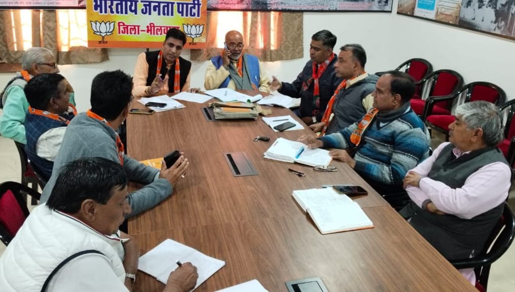 भीलवाड़ा। भाजपा प्रदेश नेतृत्व के निर्देशानुसार भाजपा जिला कार्यालय पर संगठन संरचना जिला प्रभारी दिनेश चंद्र भट्ट के मुख्य आतिथ्य एवं जिलाध्यक्ष प्रशांत मेवाड़ा की
