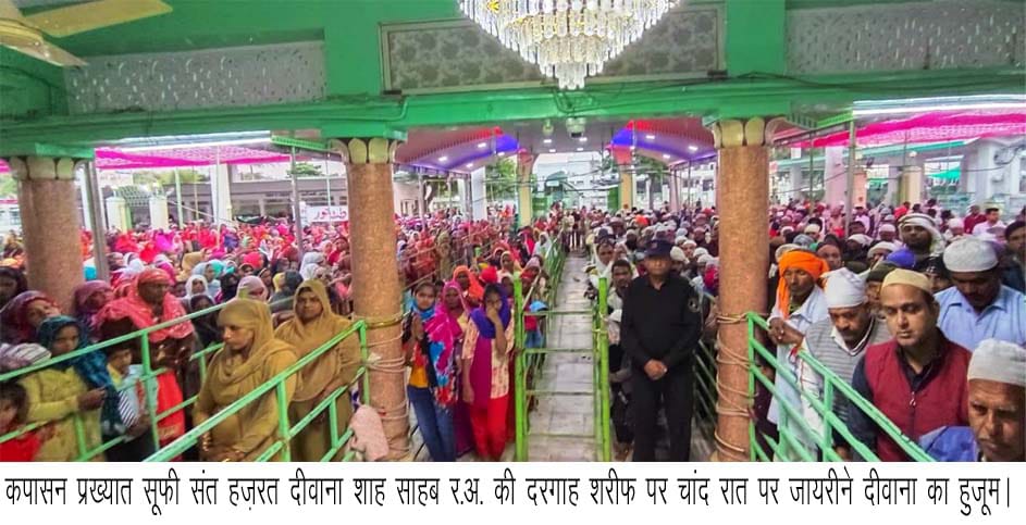 कपासन। प्रख्यात सूफी संत हज़रत दीवाना शाह साहब र.अ. की दरगाह शरीफ पर मंगलवार को जमादिल आखिर की चाँदरात पर आशिके दीवाना उमड़ पड़े। आहता