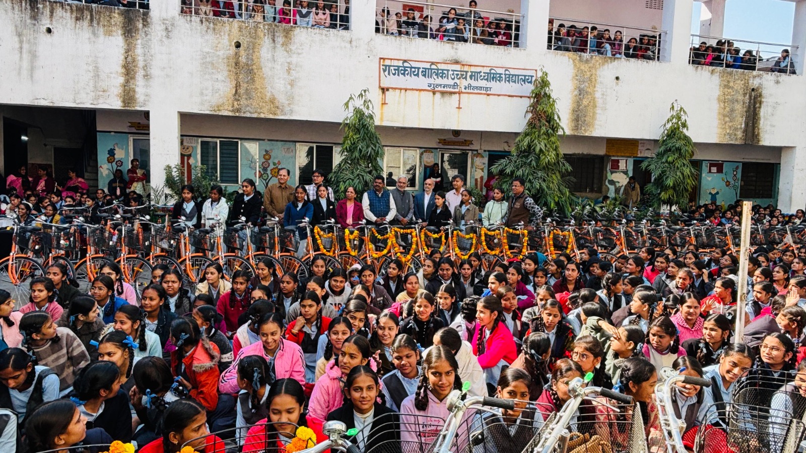 भीलवाड़ा। राजकीय बालिका उच्च माध्यमिक विद्यालय, गुलमंडी में आयोजित समारोह में 194 छात्राओं को साइकिल वितरित की गई। कार्यक्रम का शुभारंभ विधायक अशोक कोठारी द्वारा
