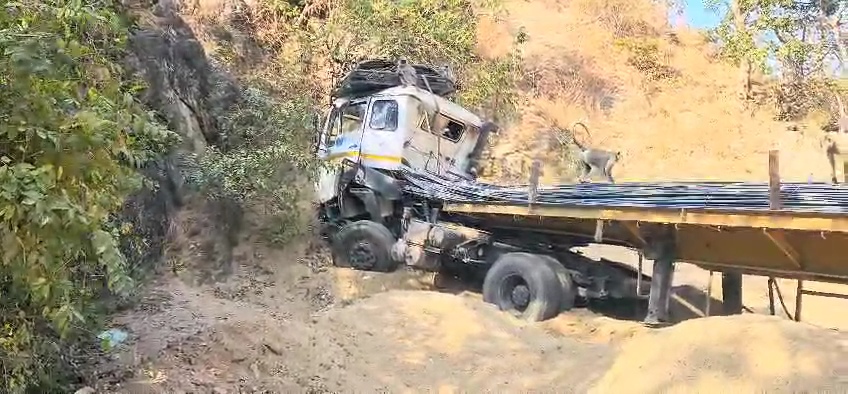 देसूरी की नाल में फिर हुआ हादसा, लोहे के सरिये से भरा ट्रेलर दीवार से टकराया