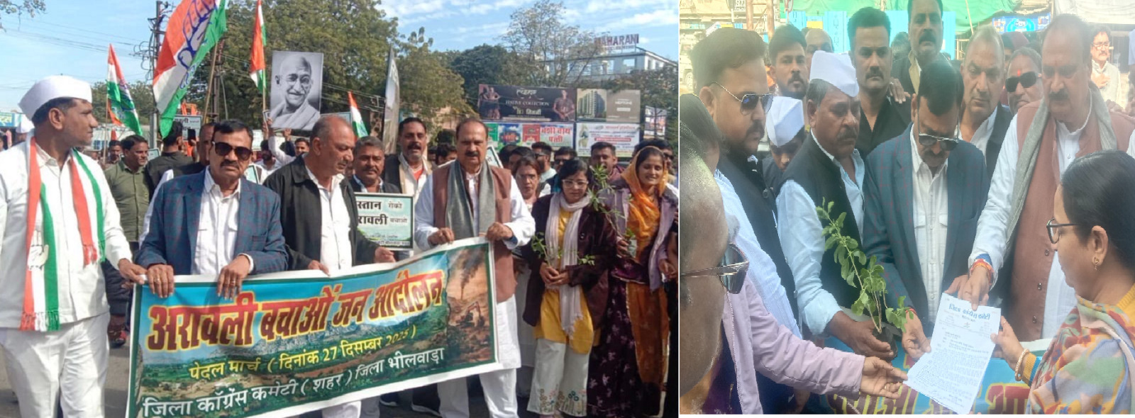 अरावली बचाओ : भीलवाड़ा में कांग्रेस ने किया प्रदर्शन, राष्ट्रपति के नाम सौंपा ज्ञापन