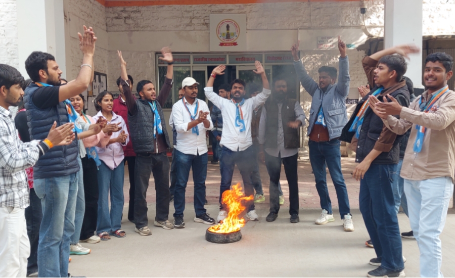 विकास शुल्क के नाम पर फर्जी वसूली के खिलाफ एनएसयूआई विरोध