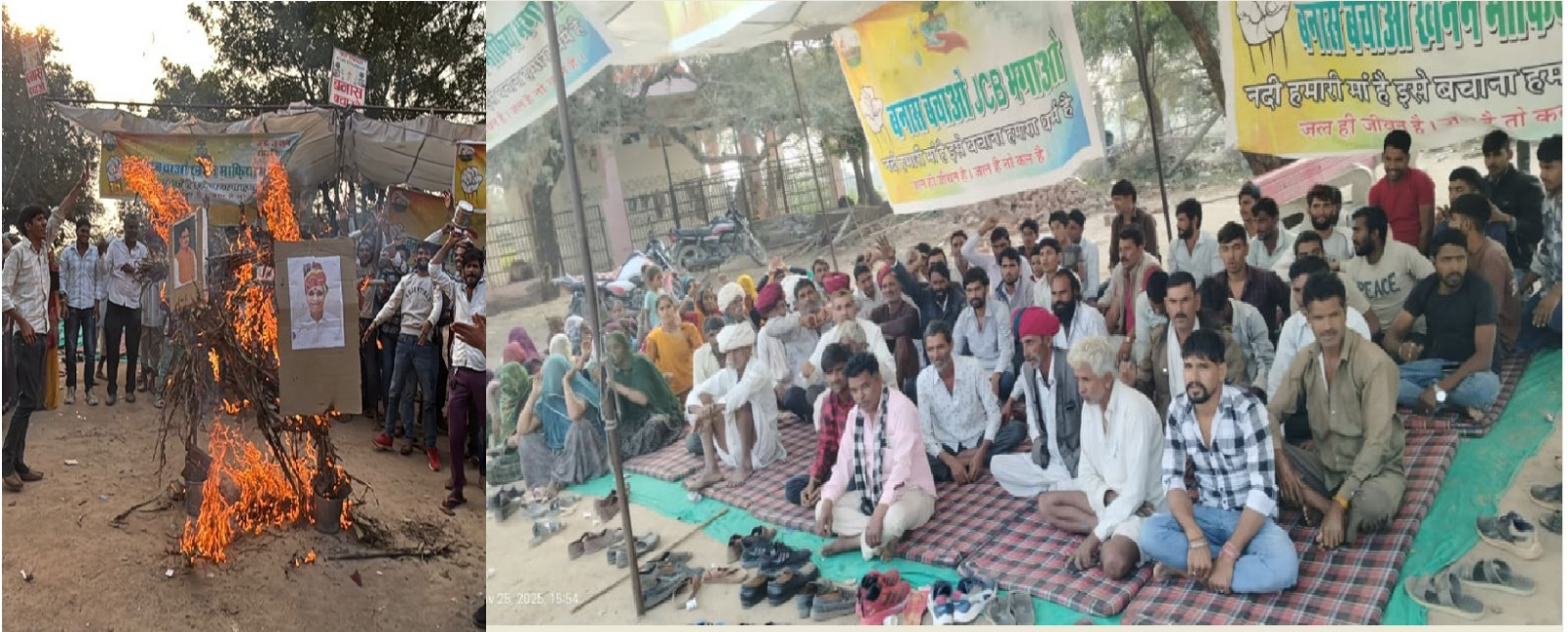 अवैध बजरी खनन पर सीएम और विधायक का फूंका पुतला, चांदगढ़ गांव में बनास बचाओ संघर्ष समिति का धरना 30वें दिन भी जारी